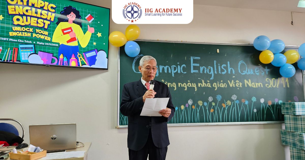 Hòa trong không khí tri ân Ngày Nhà giáo Việt Nam 20/11, sự kiện Olympic English Quest do Trường THPT Phan Chu Trinh phối hợp cùng IIG Academy tổ chức đã mang đến một ngày hội tiếng Anh THPT đầy năng lượng, sáng tạo và giàu ý nghĩa. Đây là hoạt động nổi bật trong chương trình tiếng Anh liên kết trường học, giúp học sinh rèn tư duy nhanh nhạy, thử thách bản lĩnh và nuôi dưỡng tình yêu với ngoại ngữ.